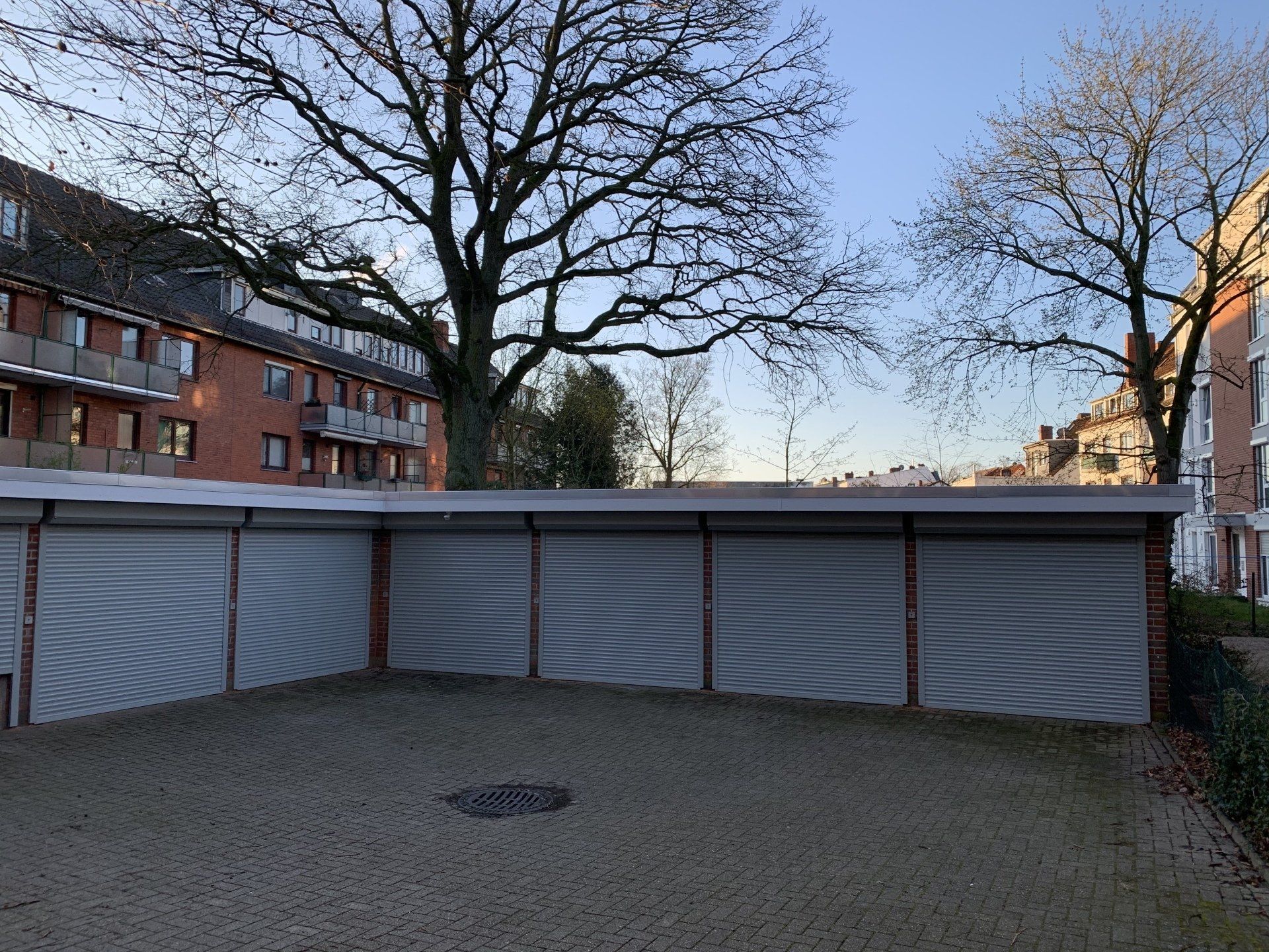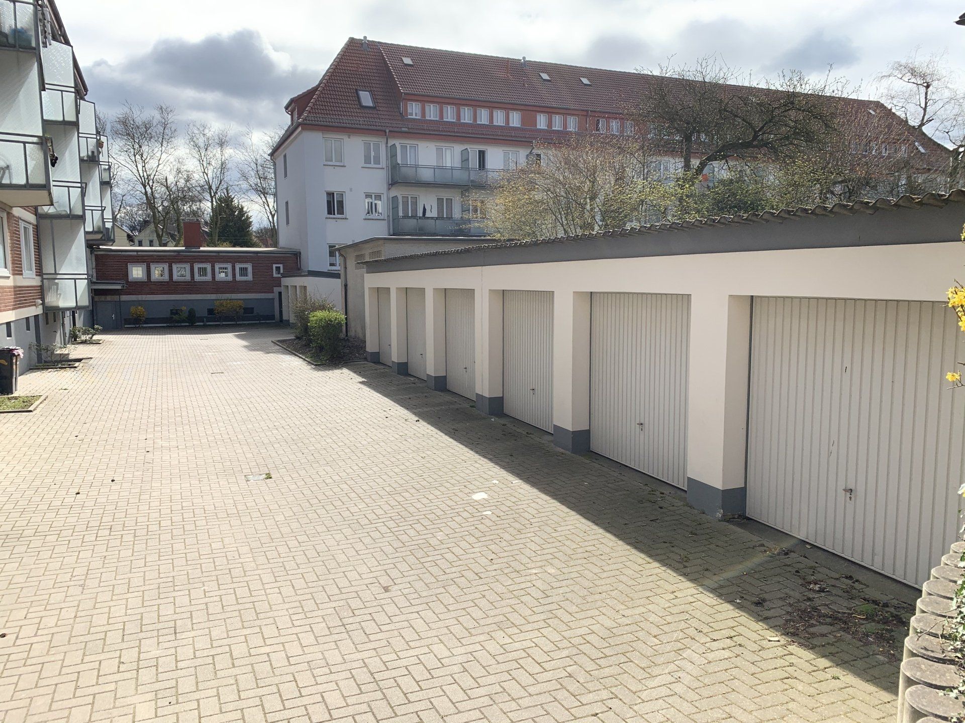 Garagenhof mit 12 Garagen und 12 Carport mit Zufahrt über die Strassen "Am Wandrahm" und "Kleine Helle".