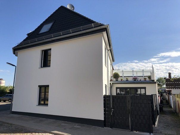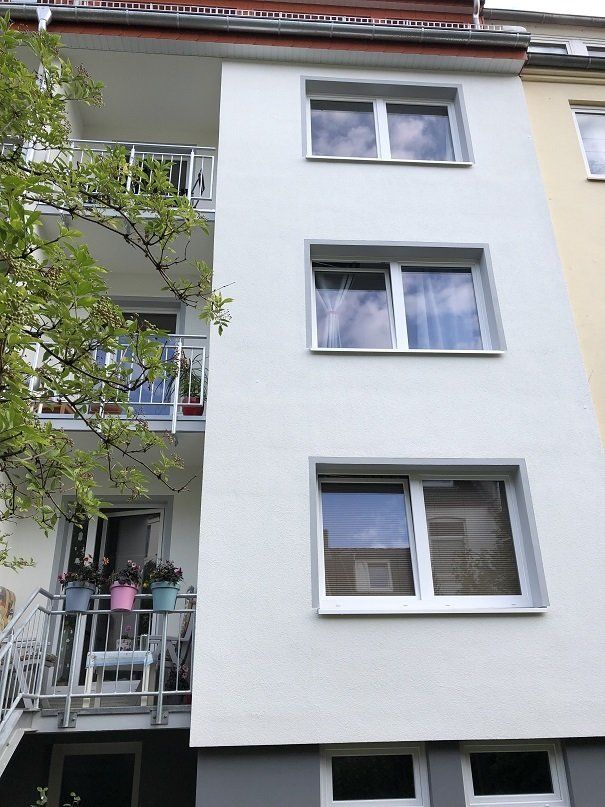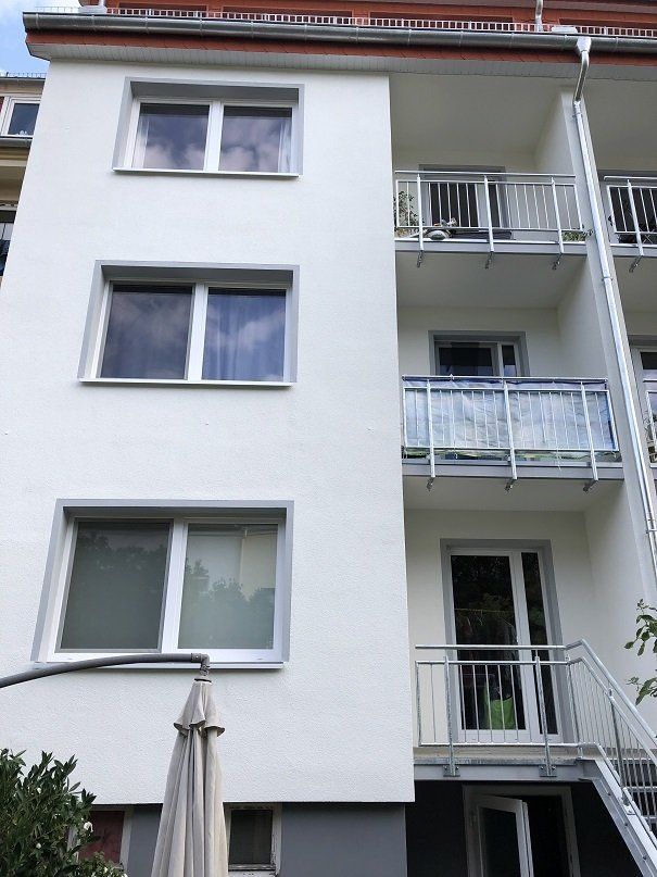 Nach dem 2.Weltkrieg war die zuvor aufwendig mit Stuckprofilen, Säulen und in Bossensteinoptik gestaltete Hausfassade Opfer schnell durchgeführter Sanierungsarbeiten geworden. Das Zurückführen einer Gebäudefassade in ihren ursprünglichen Zustand bezeichnet man als Reprofilierung. Wir haben daran gearbeitet, dass die Fassade wieder möglichst nah an den Originalzustand herangeführt wurde. Aus dem Souterrain, 3 Vollgeschosse und dem Dachgeschoss entstanden bei der Kernsanierung im Jahr 2019 moderne 12 Wohnungen und Apartment's.