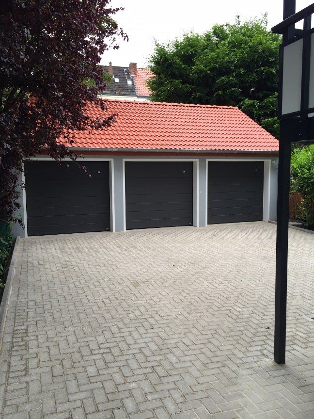 Garagenhof mit 12 Garagen und 12 Carport mit Zufahrt über die Strassen "Am Wandrahm" und "Kleine Helle".