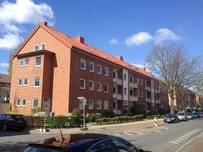 Viergeschossige Mehrfamilienhäuser in zwei Zeilen mit 11 Eingängen und insgesamt 89 Wohnungen, Baujahr 1952, , innen und außen laufend modernisiert (Heizung, Fenster, Fassade etc.), Ausbau der Dachgeschosse 1995/96, gemeinsame Gärten, 13 Garagen in extra Garagenhof, Ortsteil Hulsberg im Übergang zu Hastedt