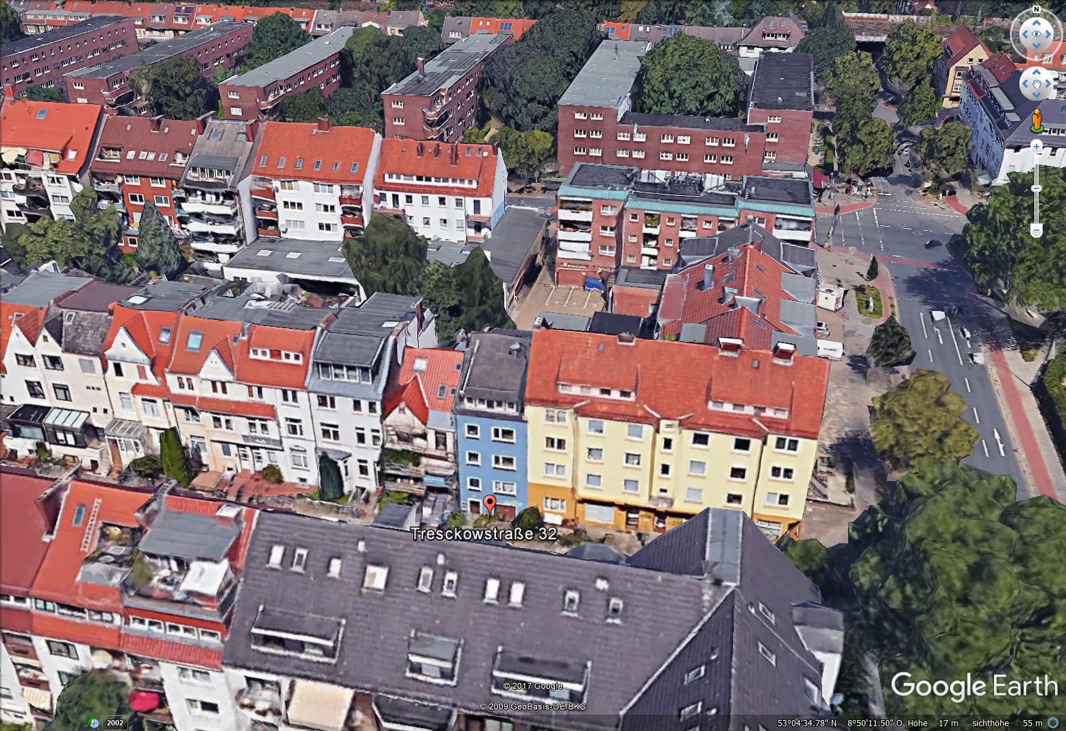 Dieses im Jahr 1920 erbaute Alt-Bremer-3-Familienhaus befindet sich in einer ruhigen Seitenstrasse im "Viertel"- wie Ostertor und Steintor von Bremen schlicht genannt werden. Das nachbarliche Umfeld ist hauptsächlich geprägt durch die Alt-Bremer-Häuser der Jahrhundertwende.
