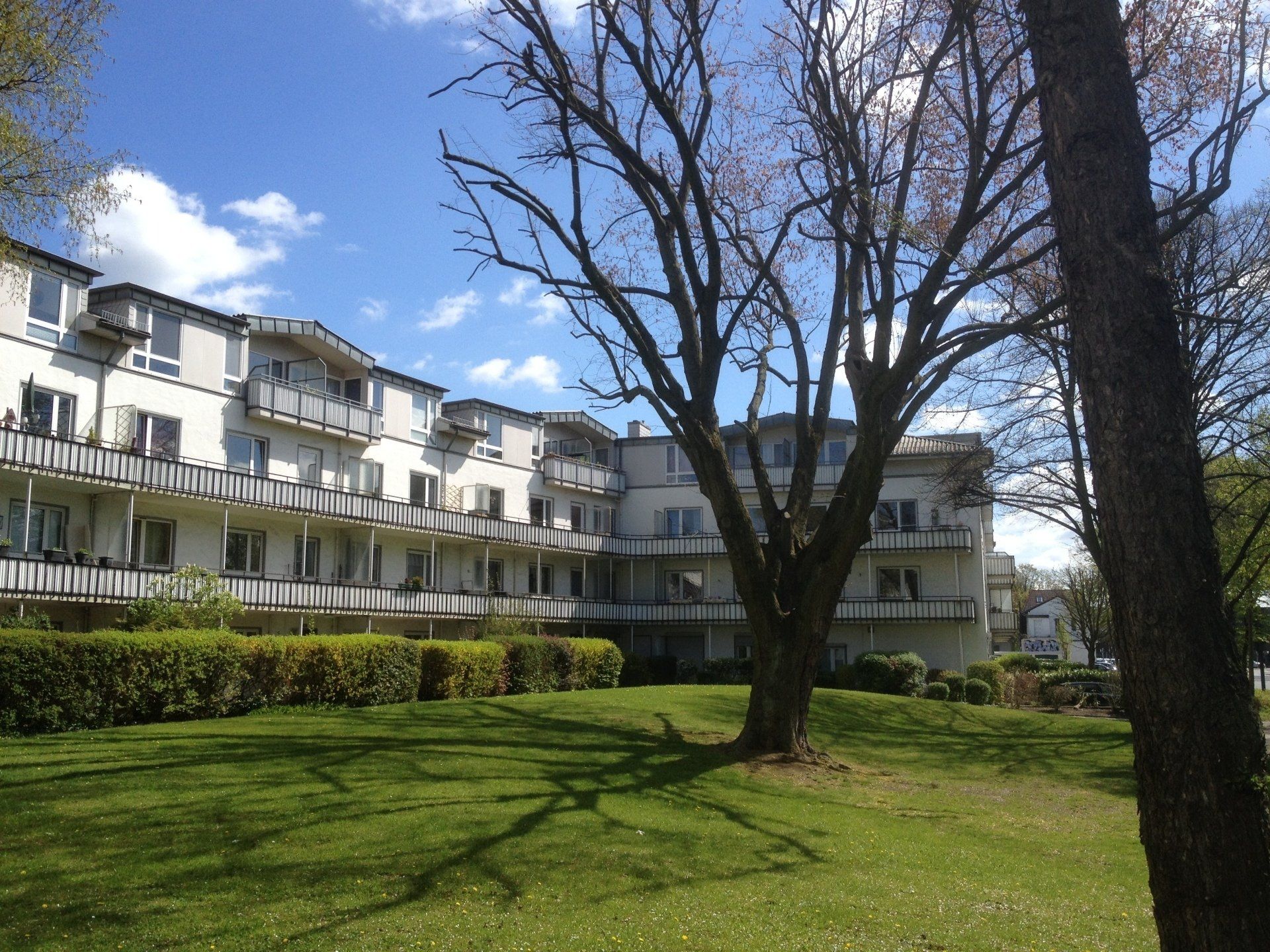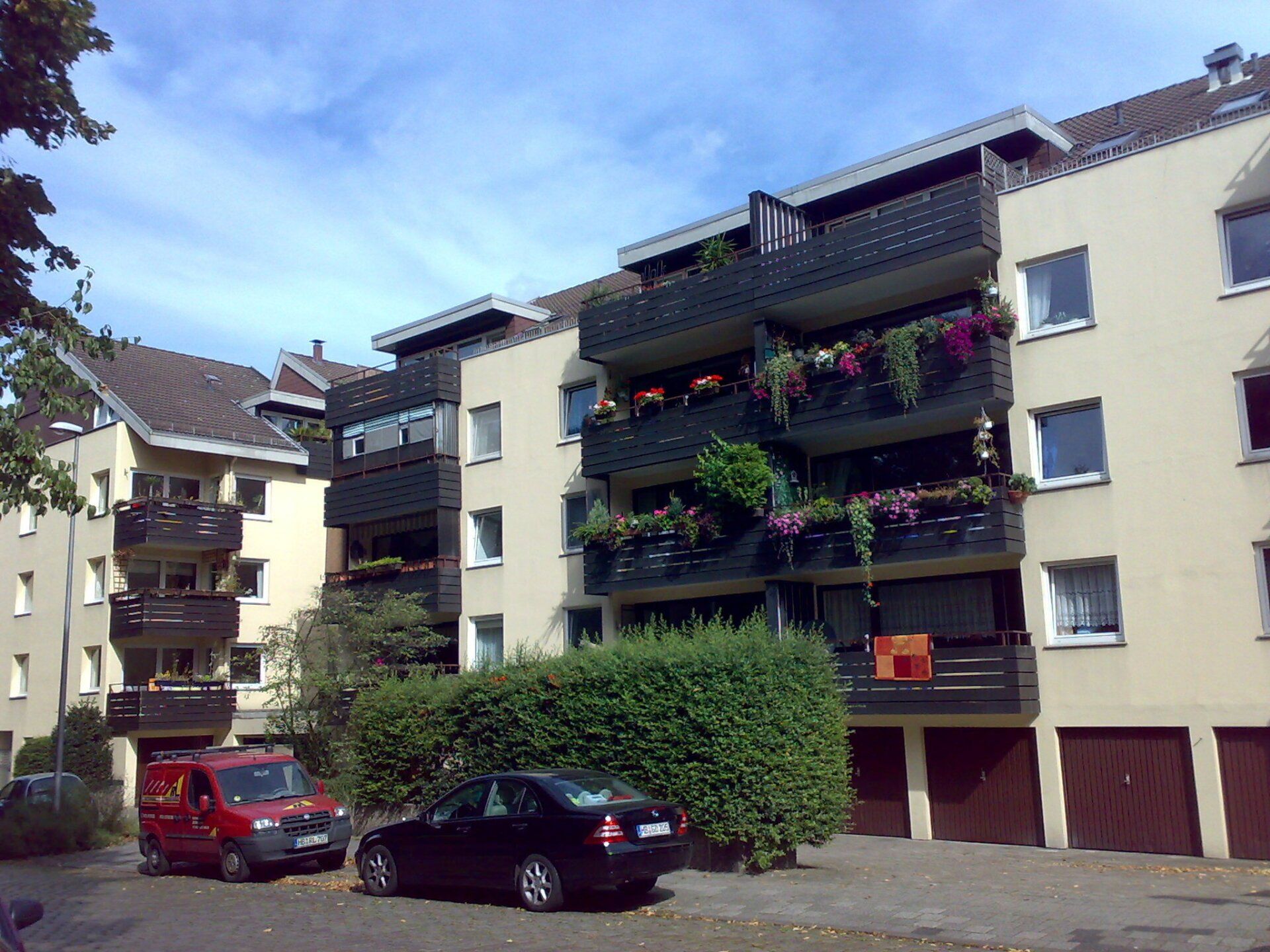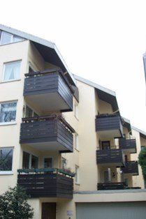 Viergeschossige Mehrfamilienhäuser in zwei Zeilen mit je 4 Eingängen und insgesamt 76 Wohnungen, Baujahr 1952, innen und außen laufend modernisiert (Heizung, Fenster, Fassade etc.), Ausbau der Dach-geschosse 1992, gemeinsame Gärten, 15 Garagen im extra Garagenhof, ruhige Stichstraße am Waller Park.